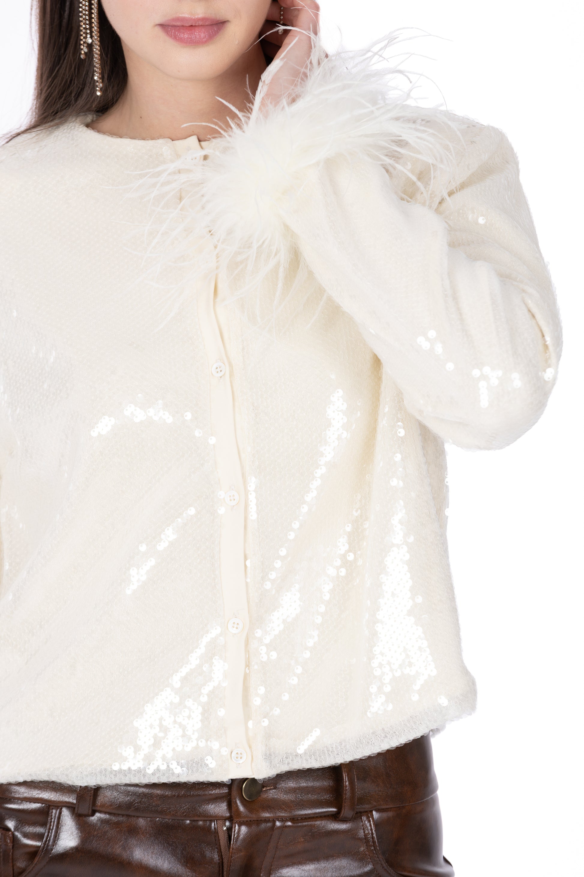 Giselle – Cardigan Cropped Paillettes & Piume Burro