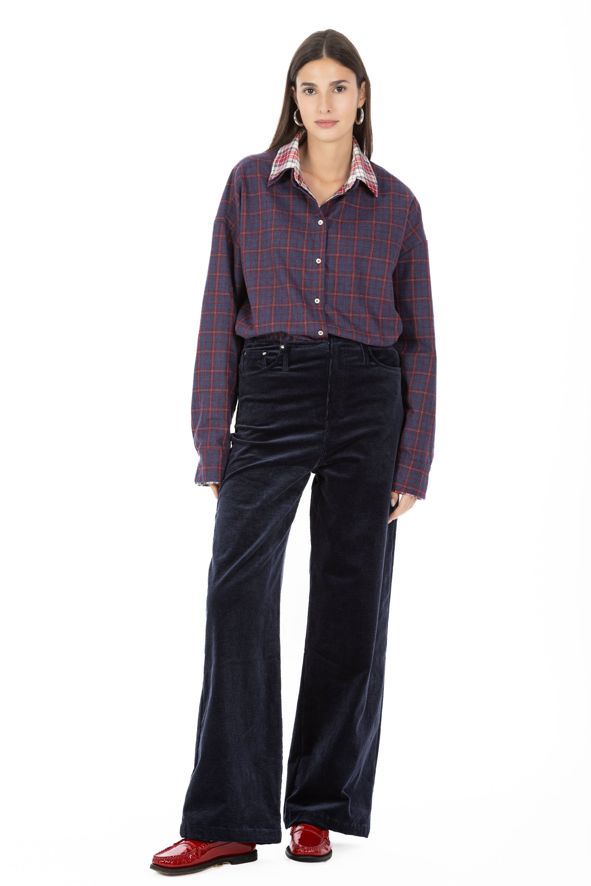 Realizzato in velluto di cotone morbido e avvolgente, presenta un taglio dritto e una vestibilità fluida, ideale per chi cerca comfort senza rinunciare allo stile.