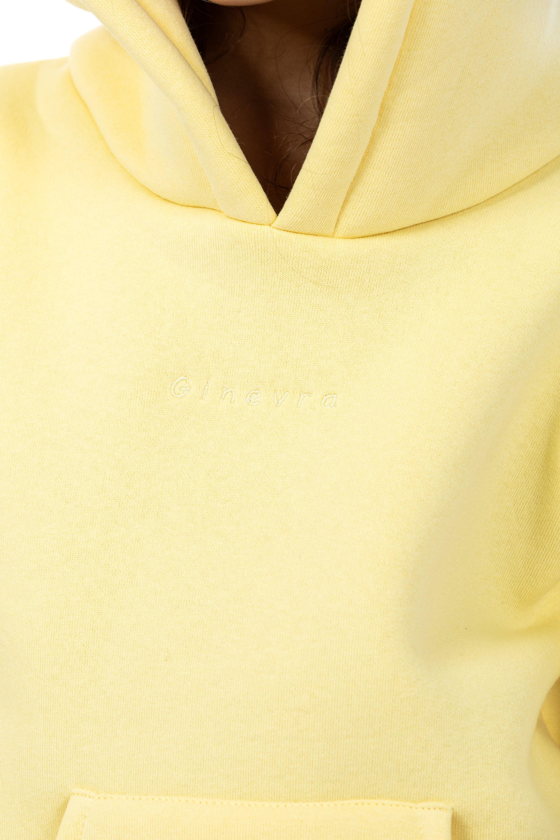 Felpa: cappuccio con orecchiette, tasca a marsupio, ricamo tono su tono “Pars Animae Meae”. Polsi e fascione in costina.