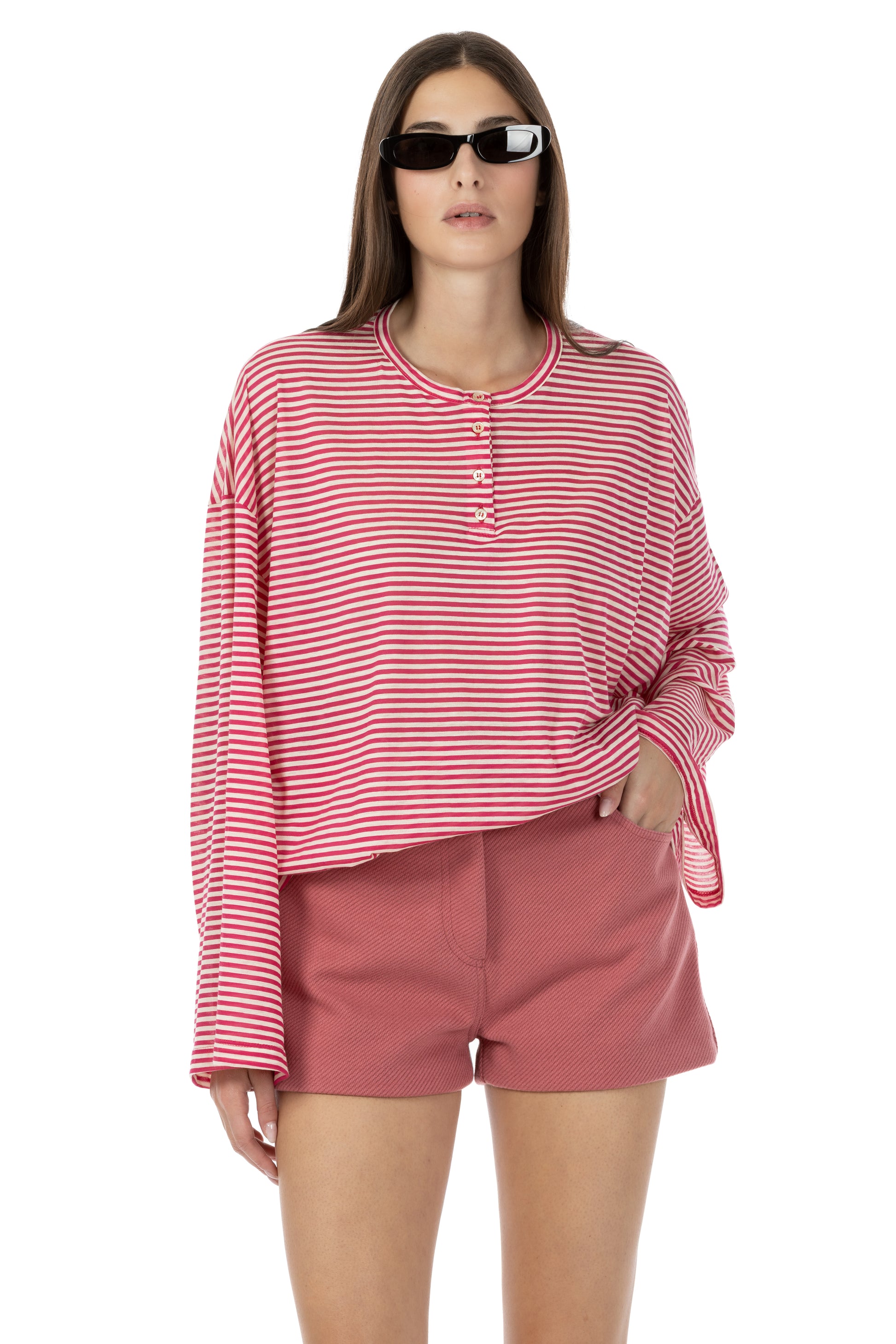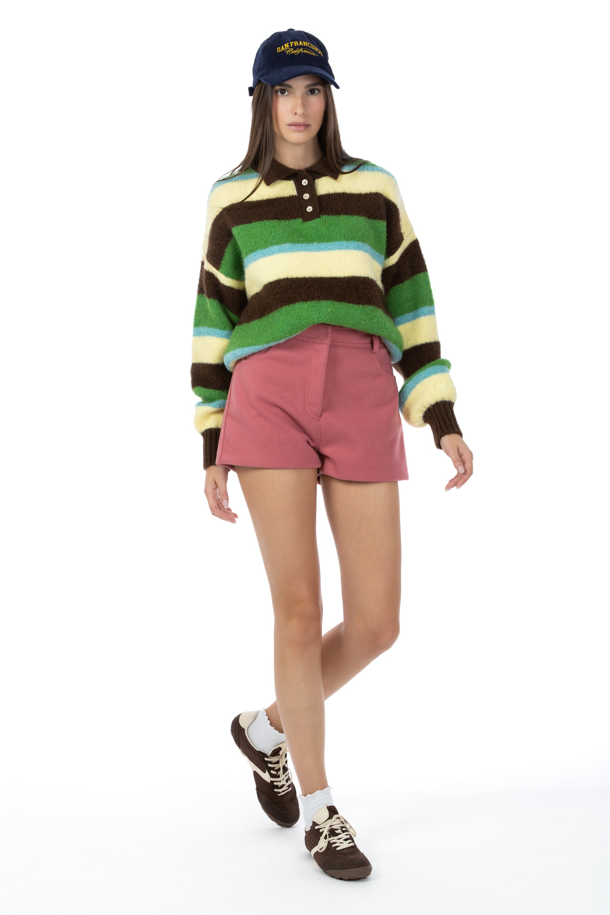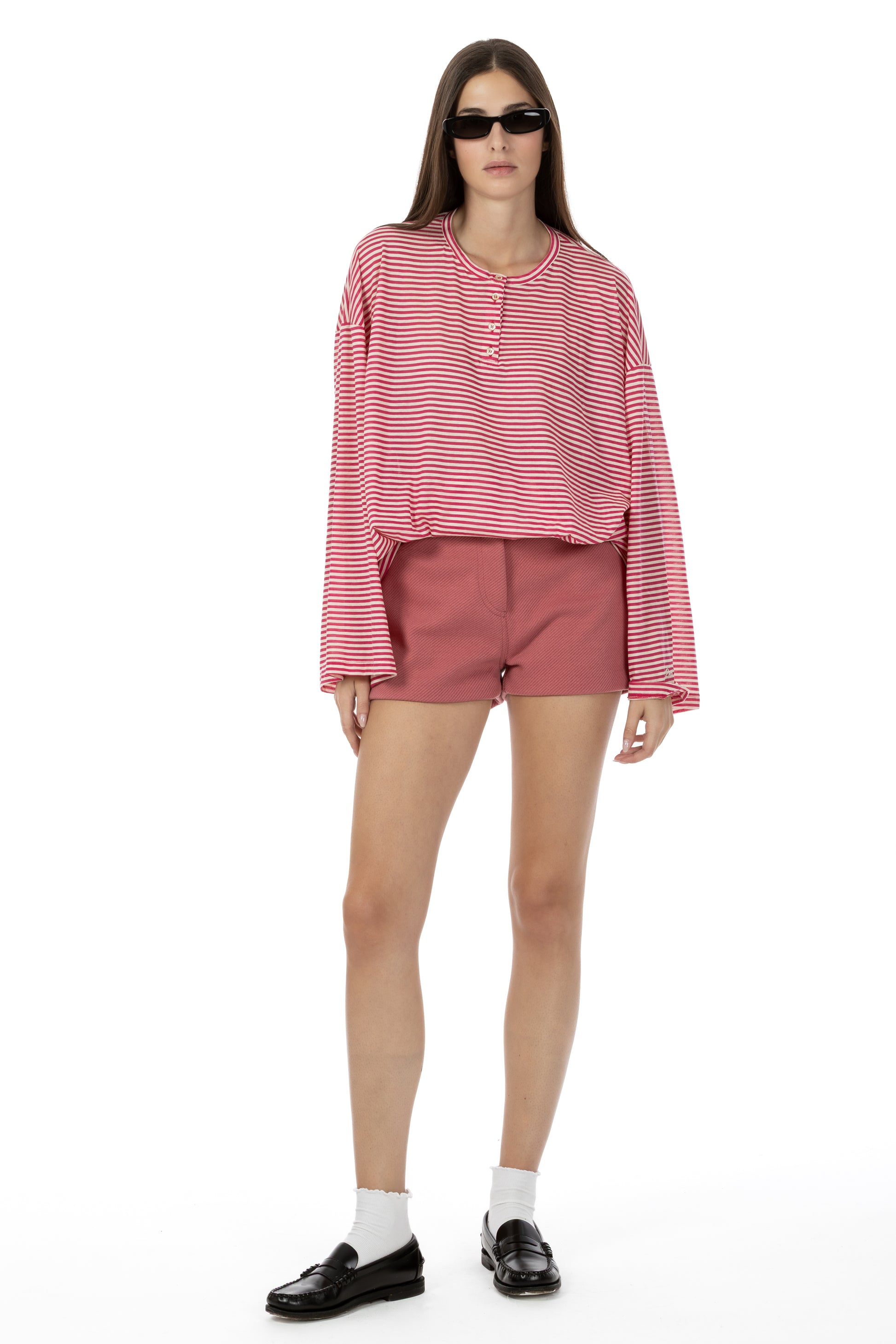 Gli shorts Noa nella variante rosa reinterpretano l’eleganza sartoriale con un tocco moderno e disinvolto.