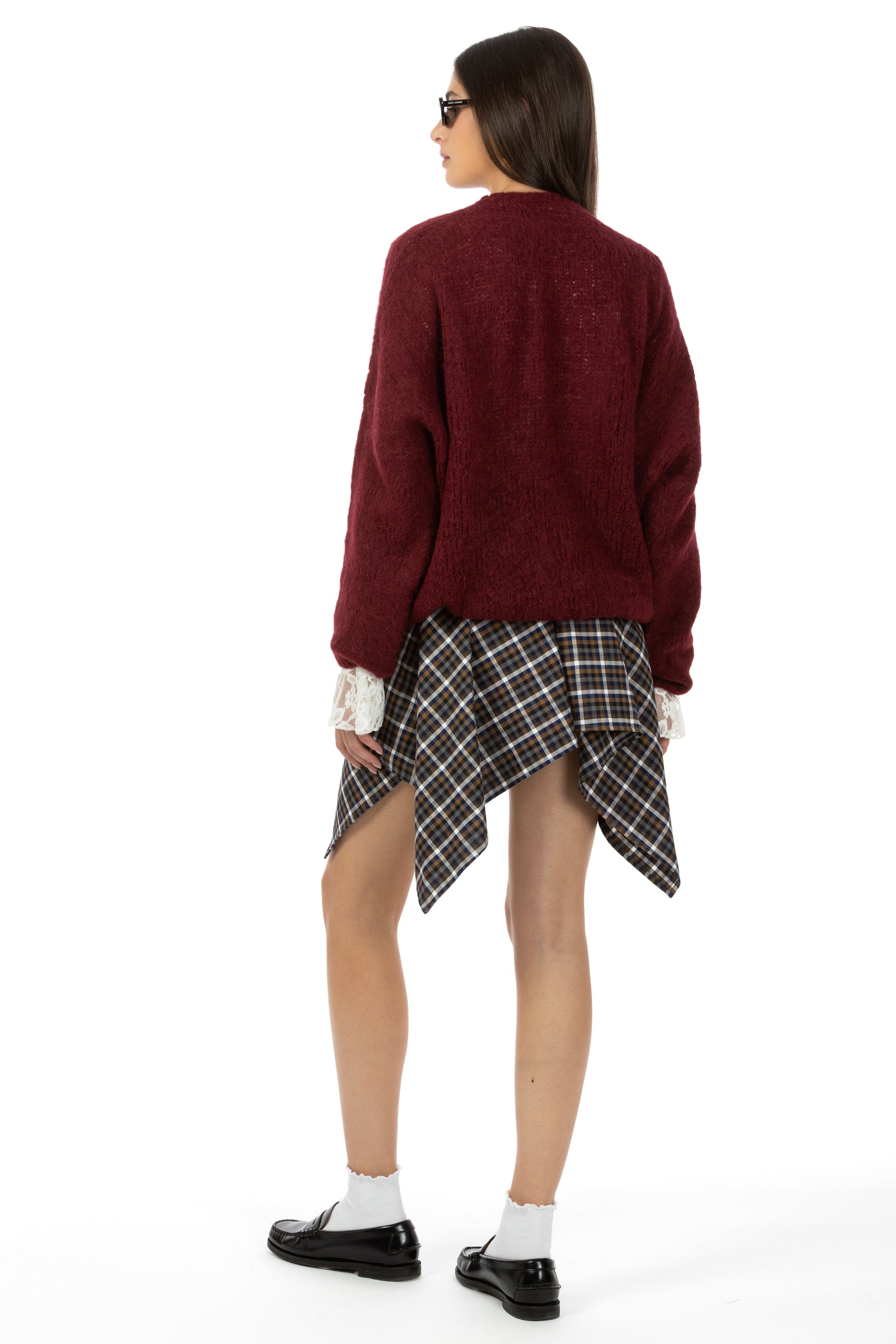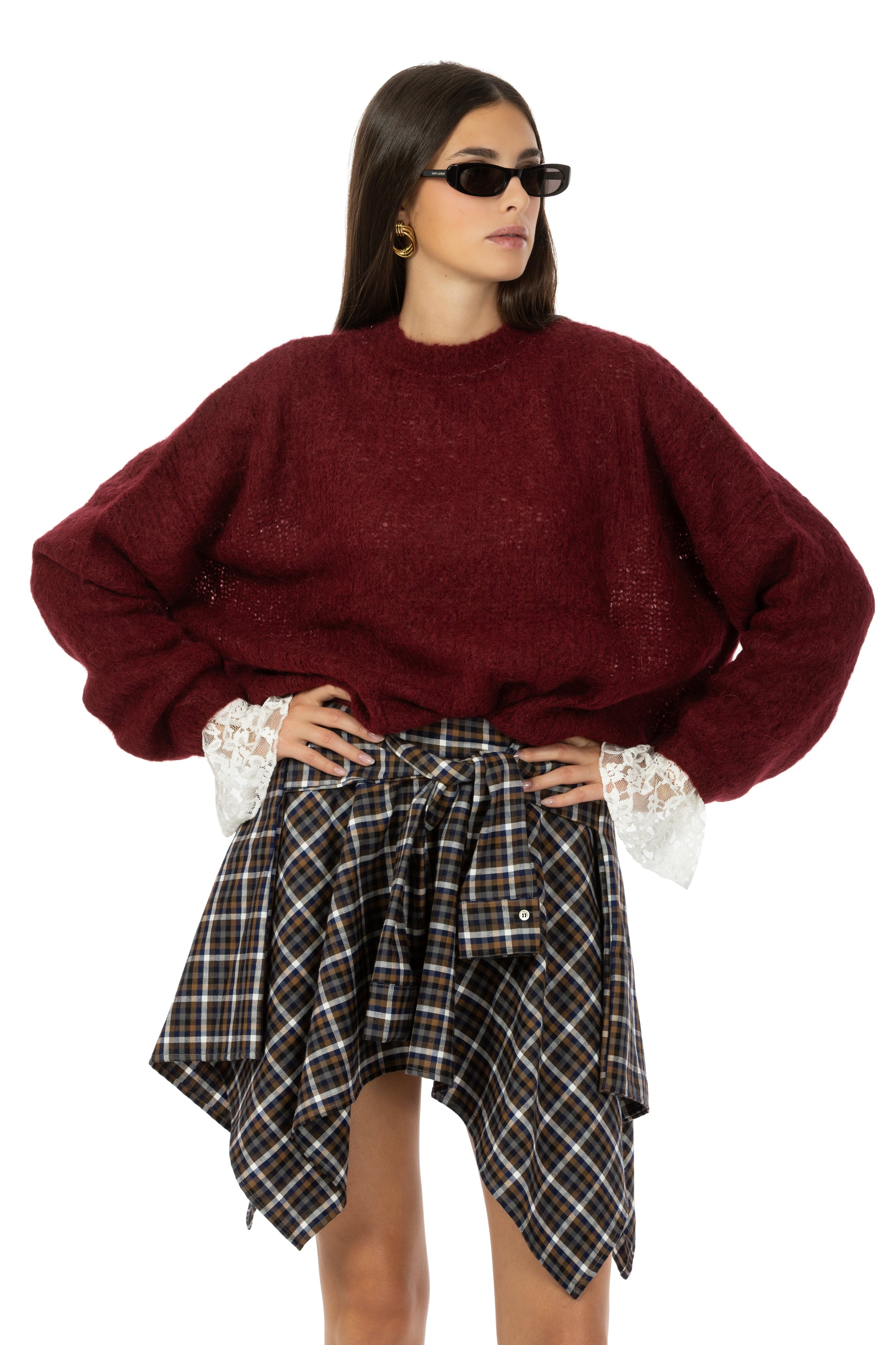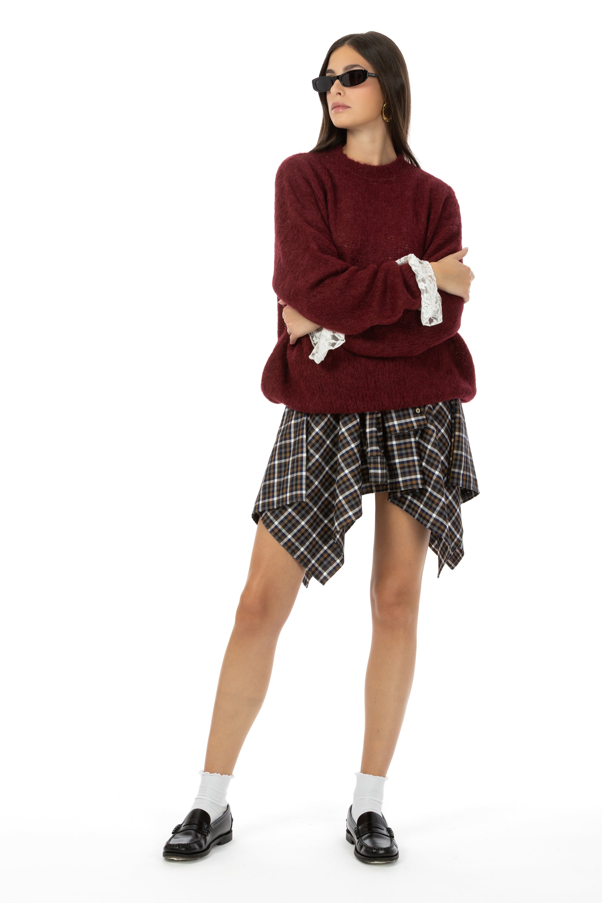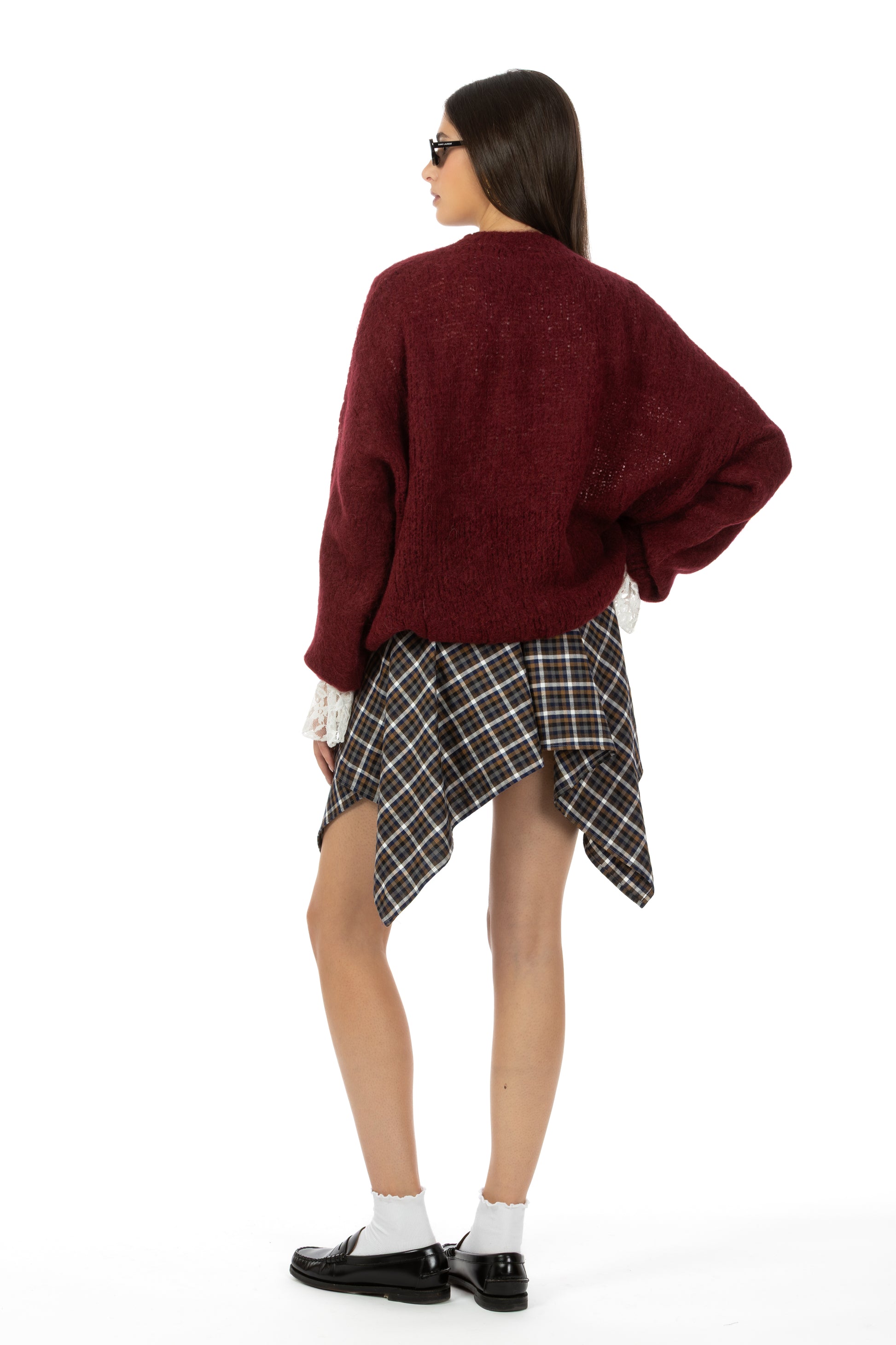 Maglione rasato in morbida alpaca bordeaux, dal taglio rilassato e dall’eleganza senza tempo. Caldo, soffice e raffinato, perfetto per ogni occasione.