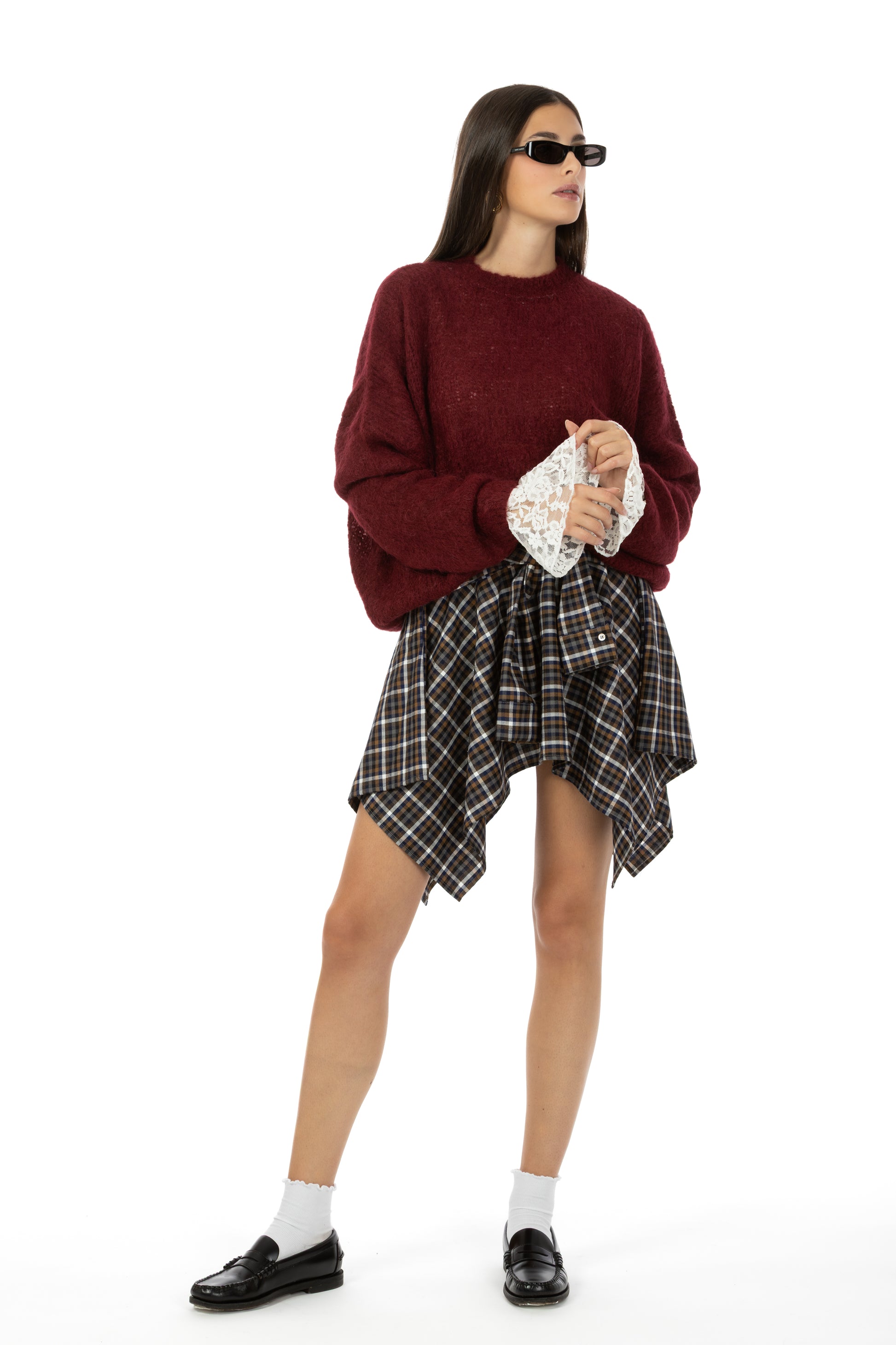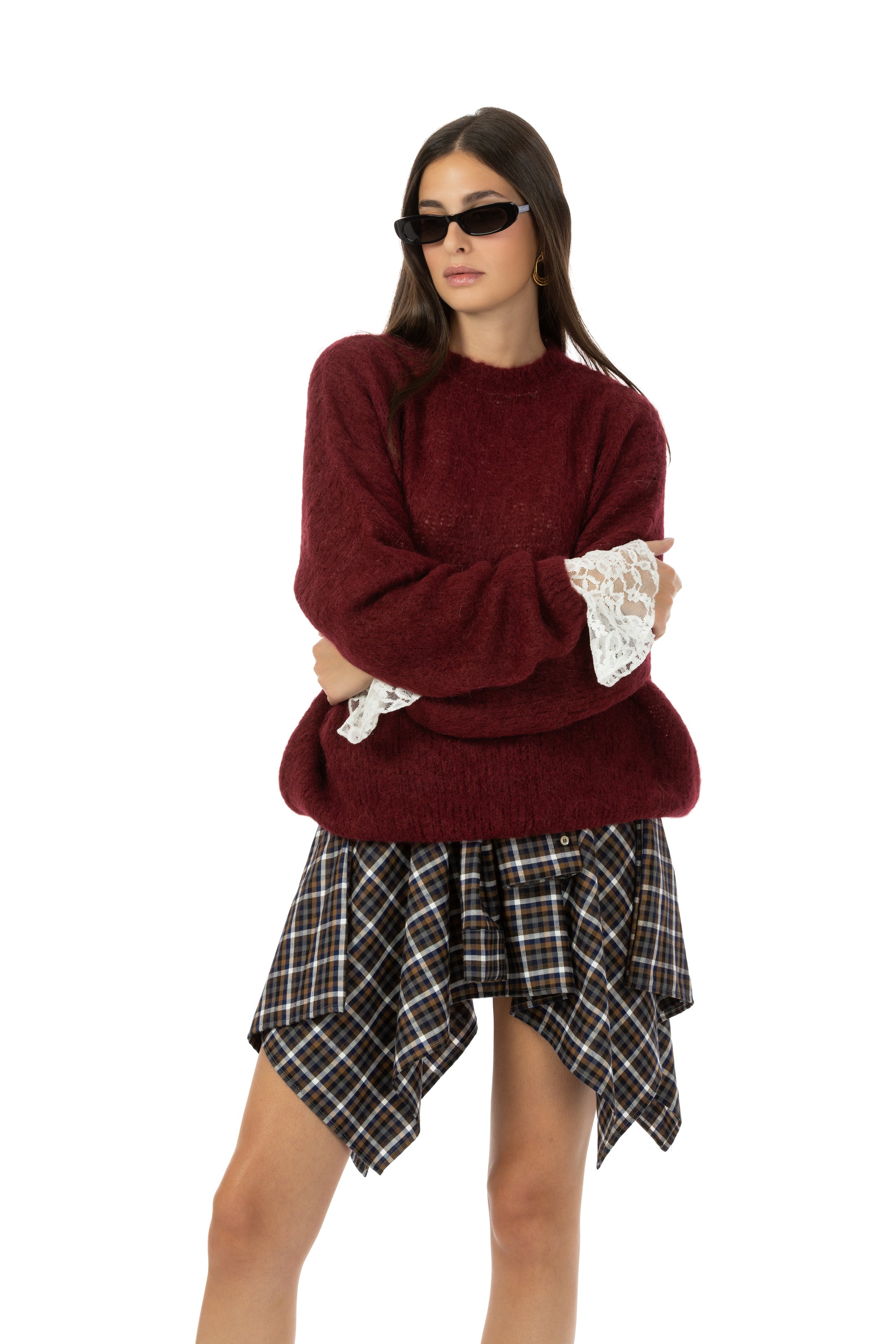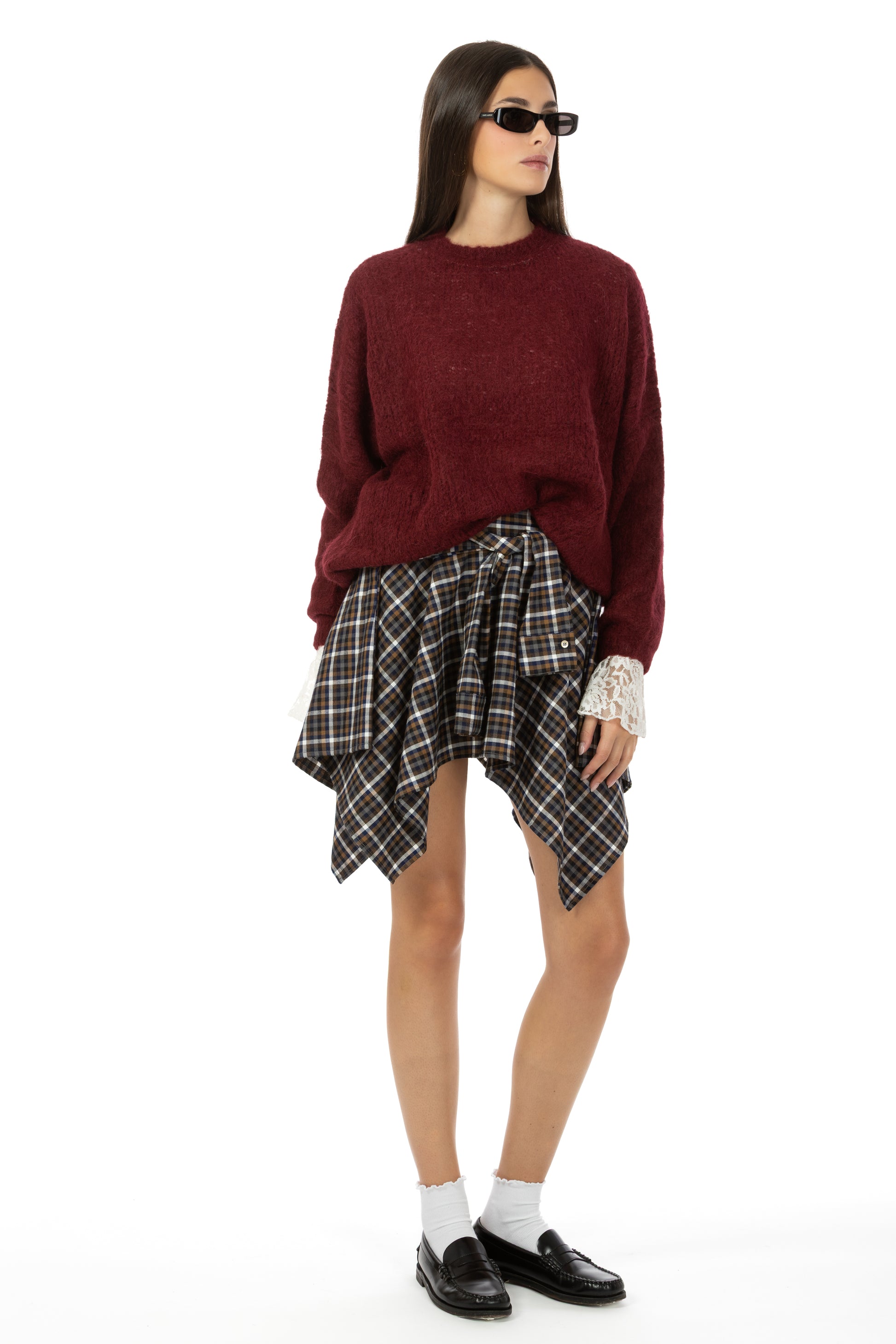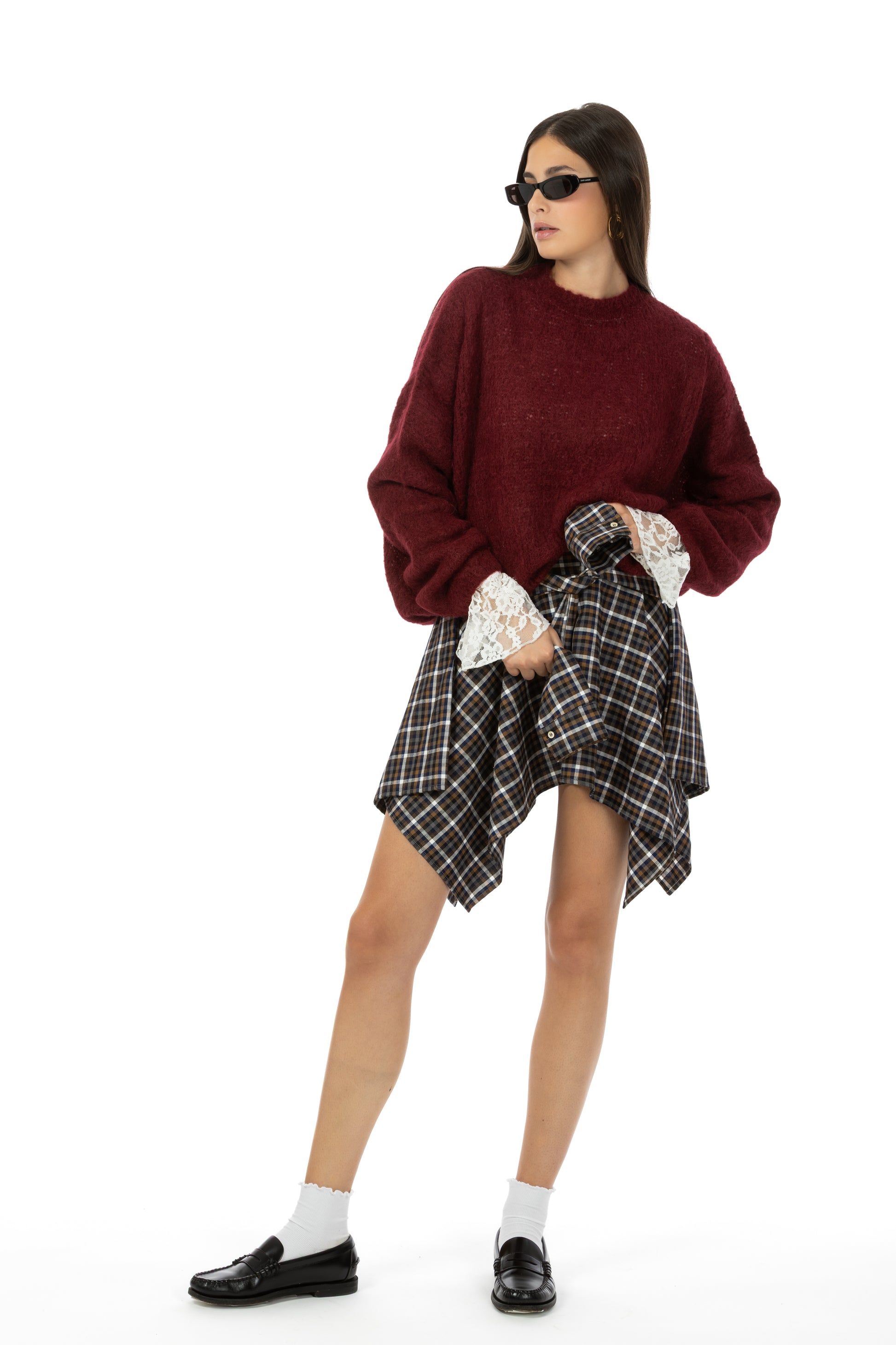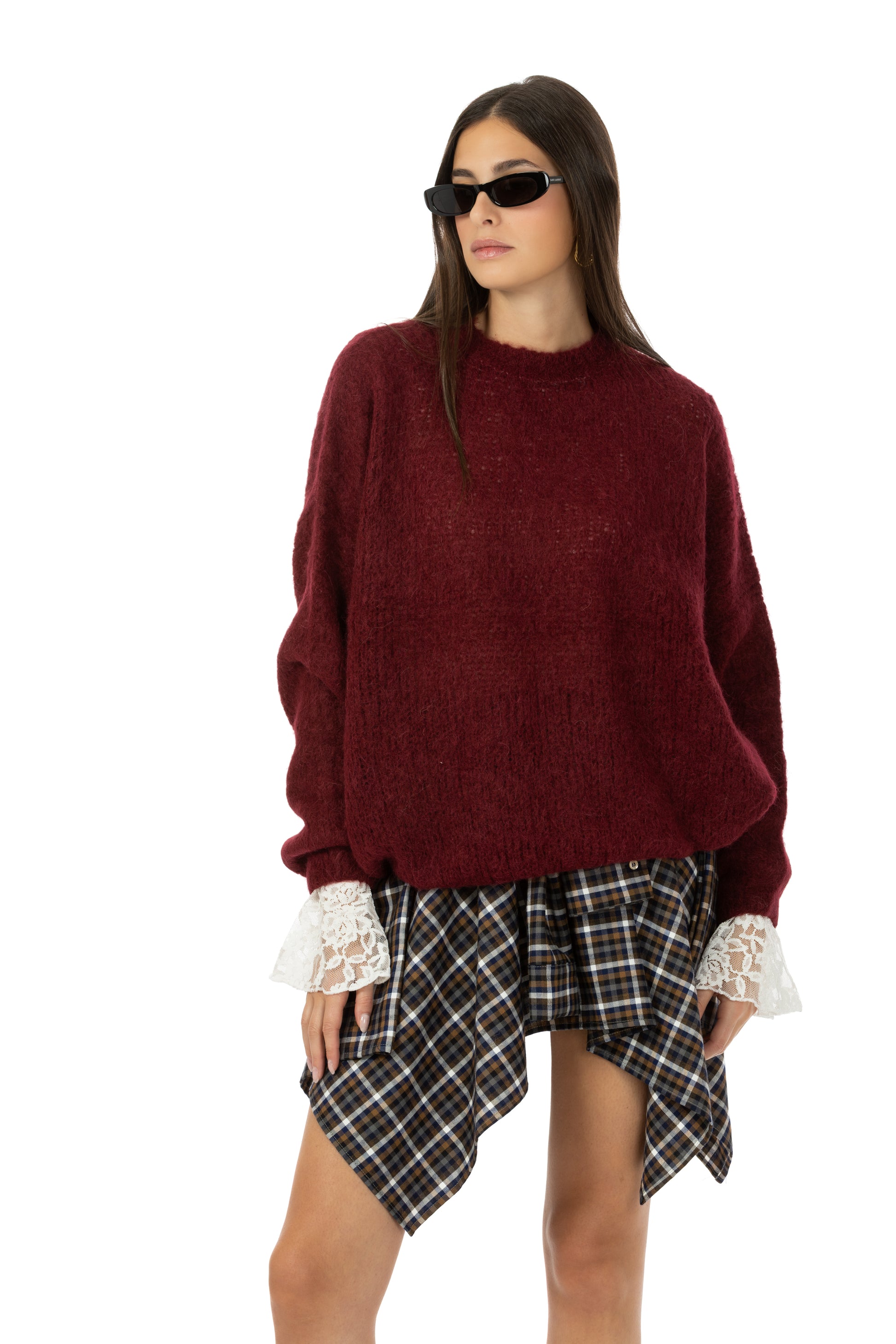 Maglione rasato in morbida alpaca bordeaux, dal taglio rilassato e dall’eleganza senza tempo. Caldo, soffice e raffinato, perfetto per ogni occasione.