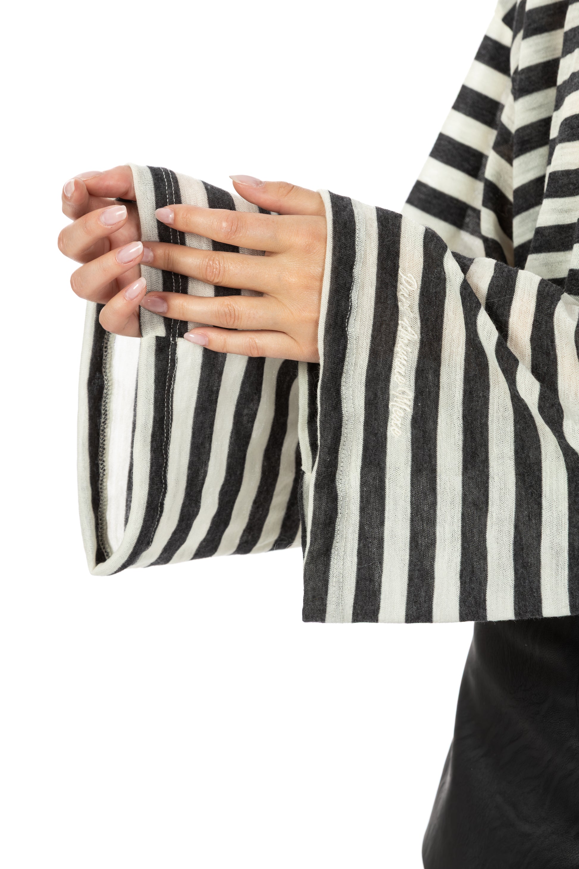 Il taglio oversize e le maniche ampie donano fluidità e movimento, mentre il ricamo “Pars Animae Meae” sulla manica sinistra firma il capo con un dettaglio distintivo.