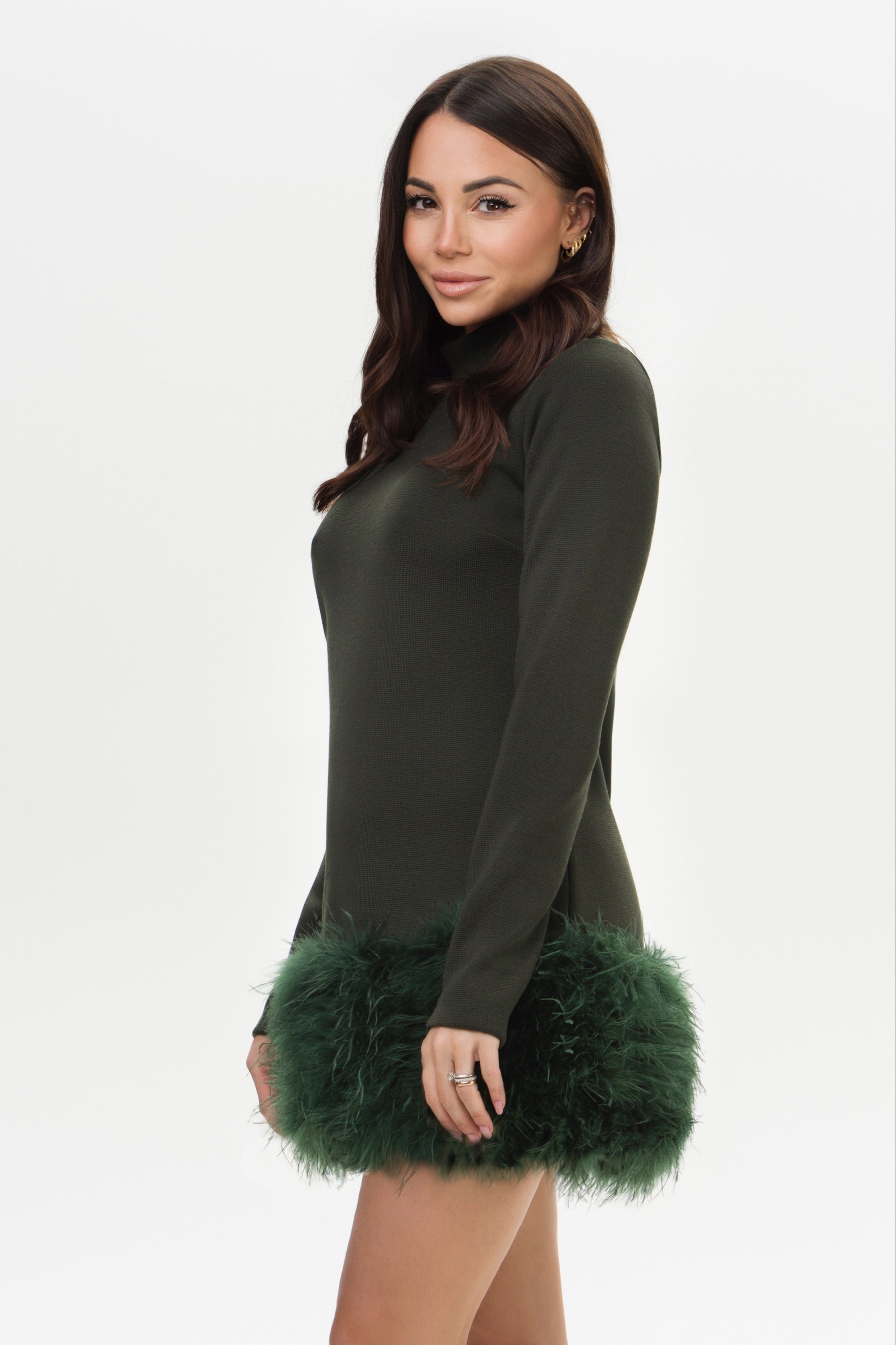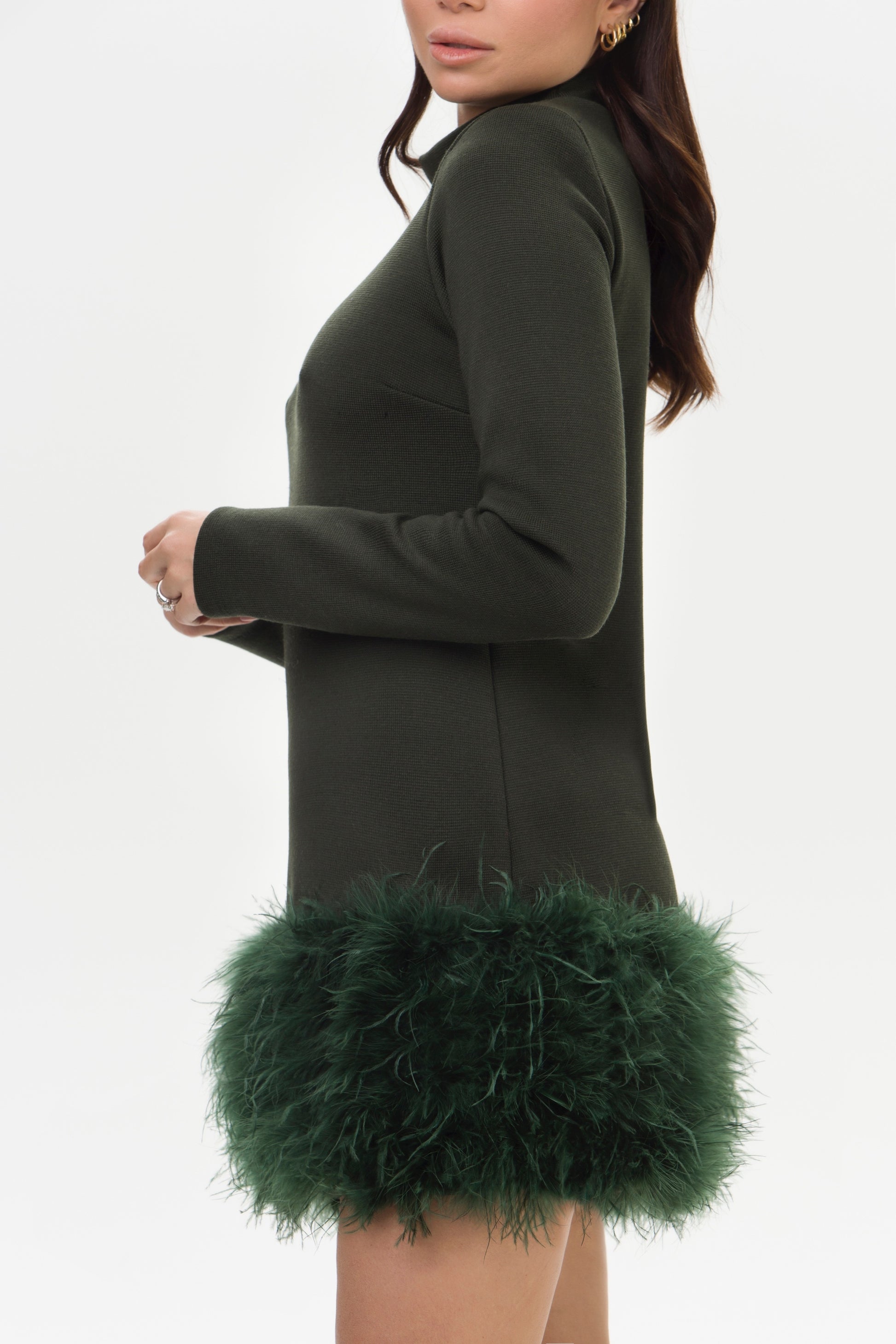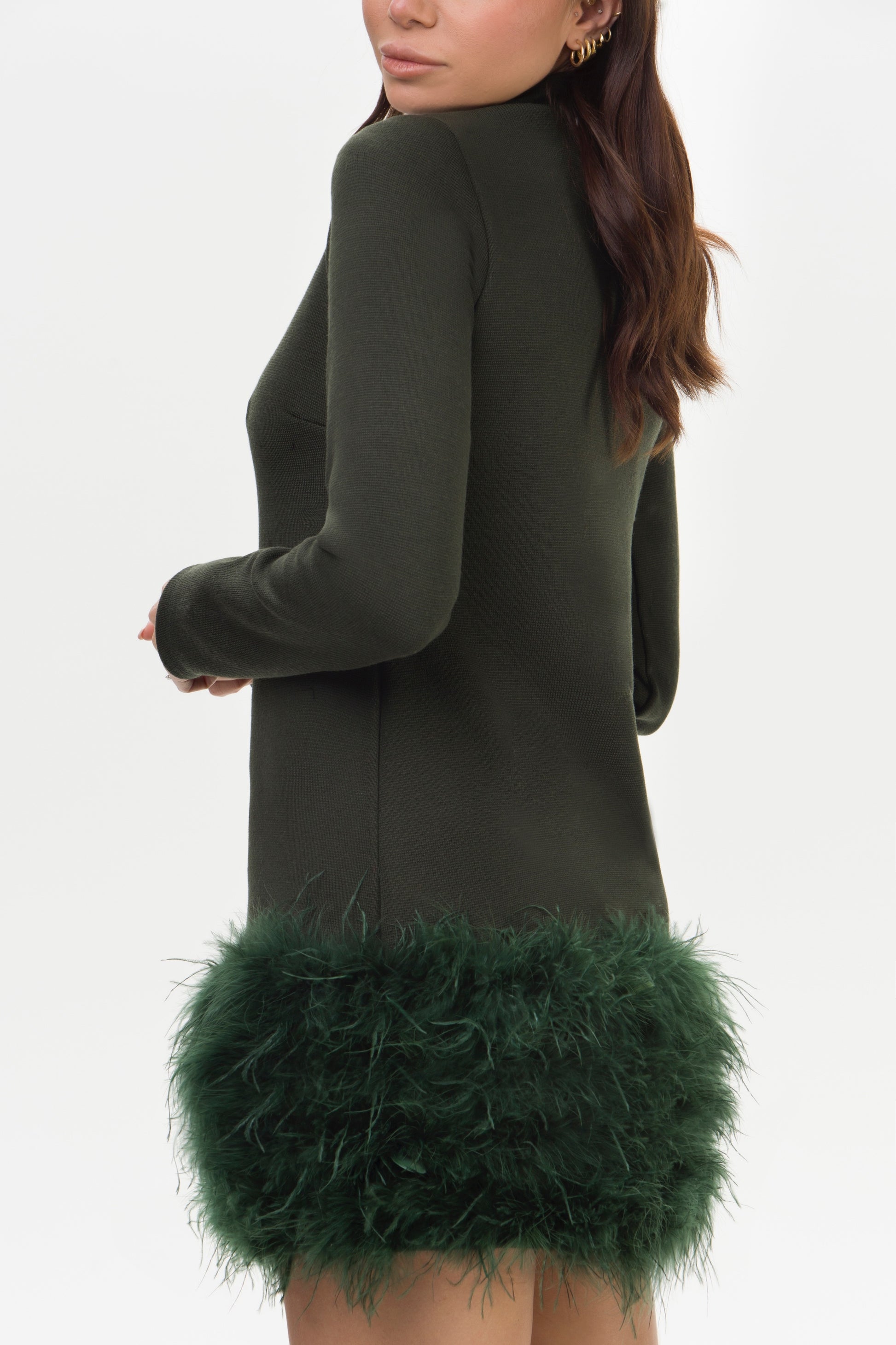 Olivia – Abito in Lana con Piume Verde